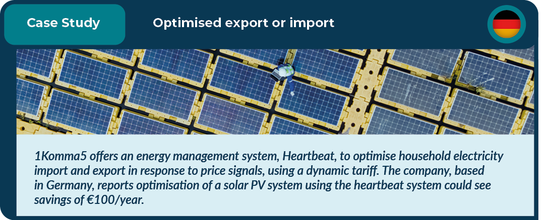 Successful initiatives in countries such as Germany have seen thousands of customers enjoy discounts of up to 35% for shifting energy usage to off-peak hours, and customer savings of €100 /year for optimising importing and exporting energy from the grid. Similar benefits have been noted in the UK, US, Japan, South Korea, Australia and a number of other countries.